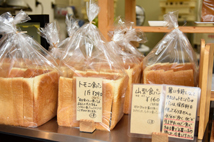 ▽トモニ食パン(1本580円、1斤290円、1/2斤145円)=加水率80%、湯種製法で作っている。クラストはサックリ歯切れよく、クラムはもっちり。